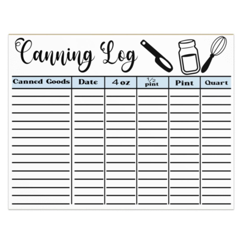 Name: Planner – Canning Log – Blue